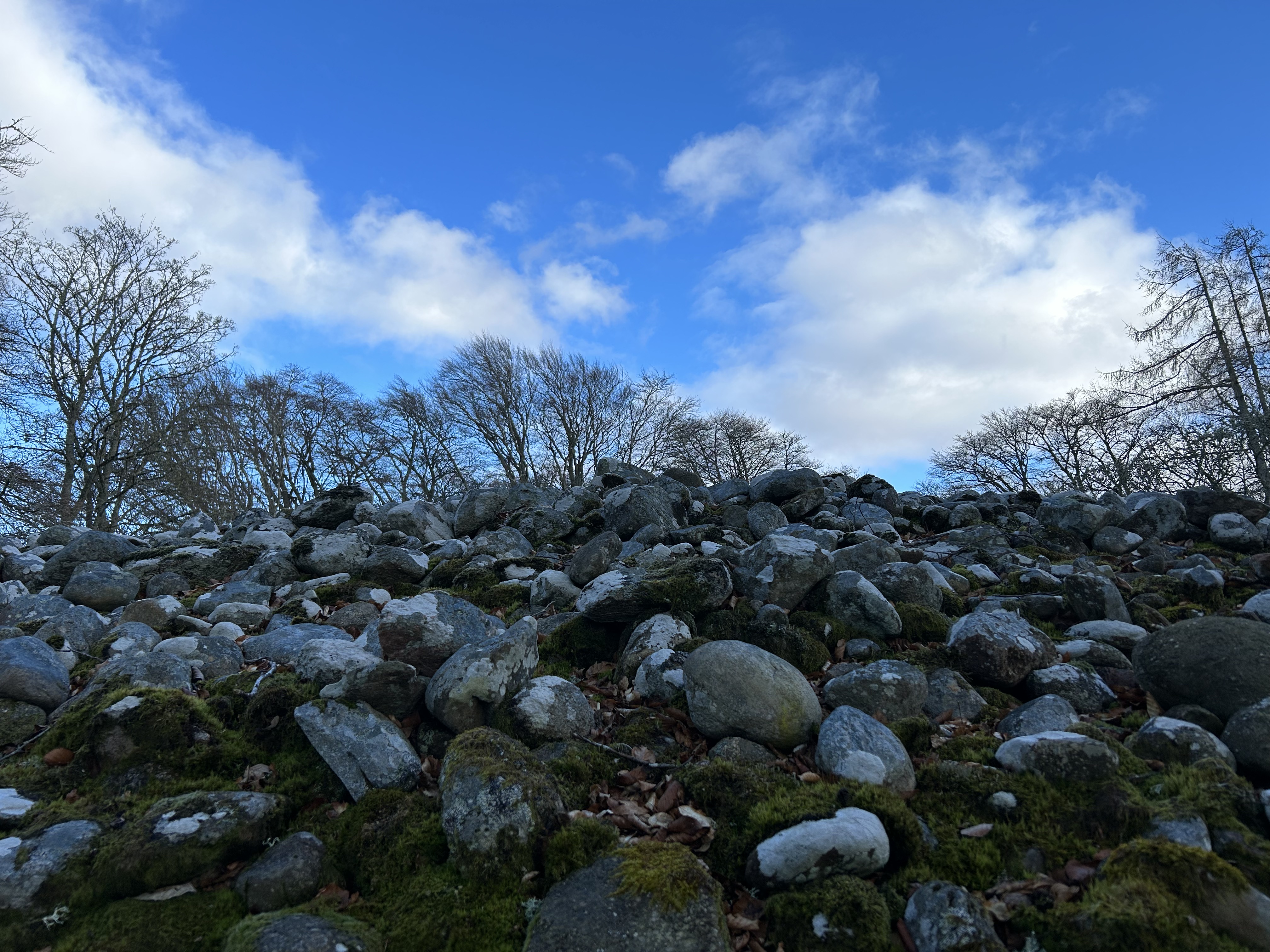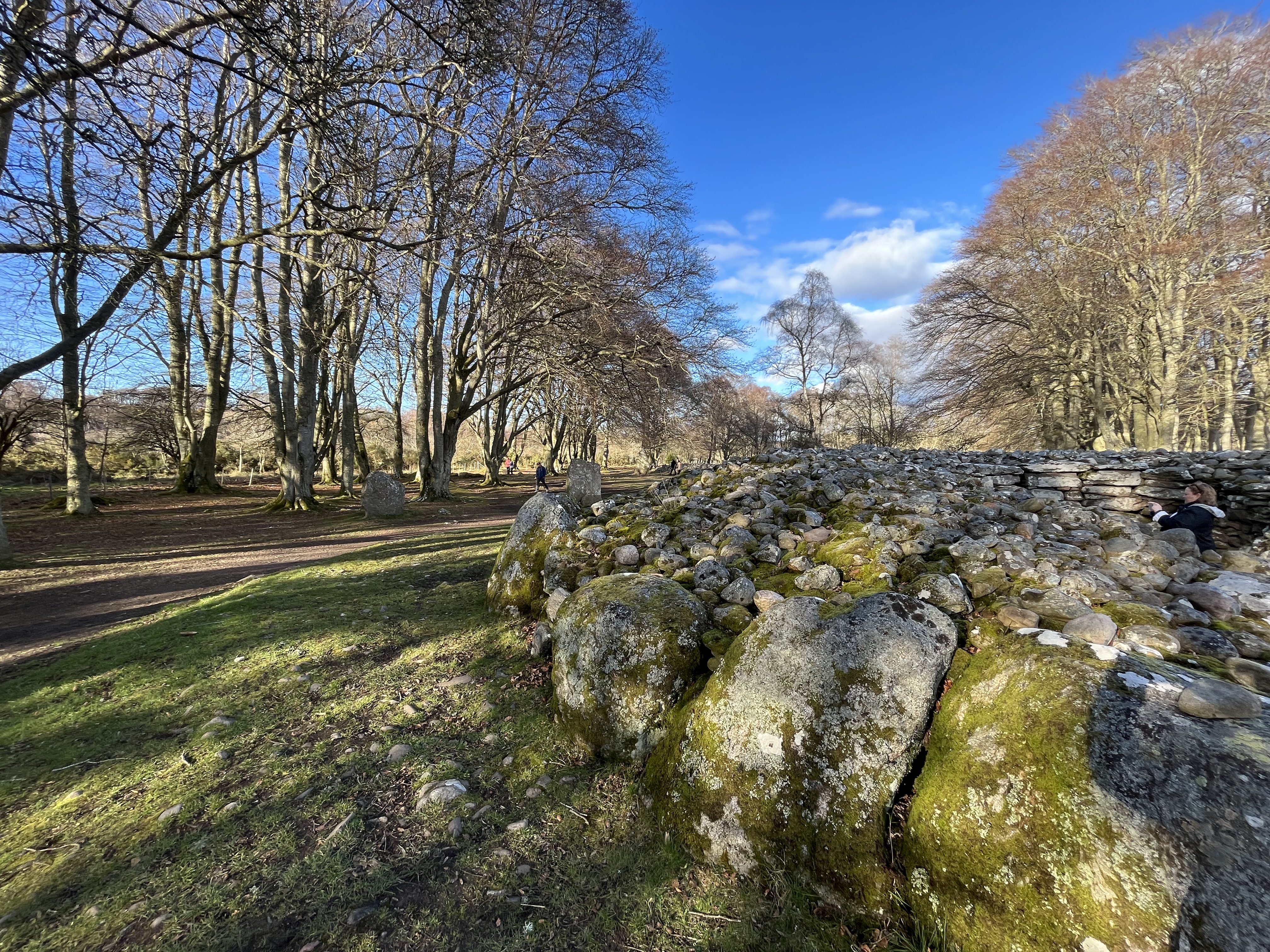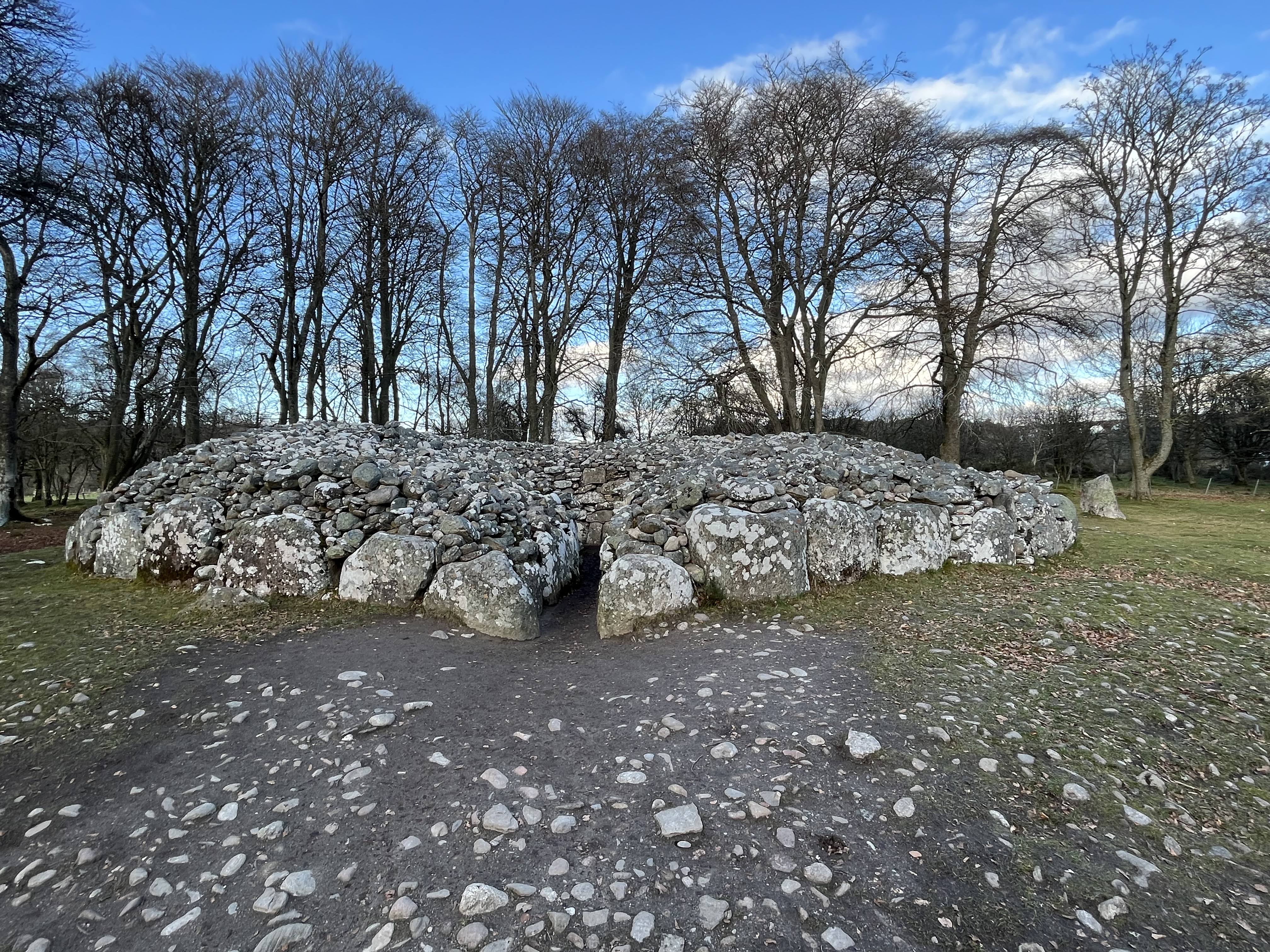 After unloading at a hotel right on the River Ness, we head out across the Caledonian Canal and on to the Clava Cairns. There are about 50 cairns of this type in an area round about Inverness and they typically have a corbelled passage grave, with a single burial chamber linked to the entrance by a short passage and covered with a cairn of stones, with the entrances oriented southwest towards midwinter sunset. Apparently, there are some Outlander references at this particular site for those familiar with that series. But us? No idea what they're talking about.