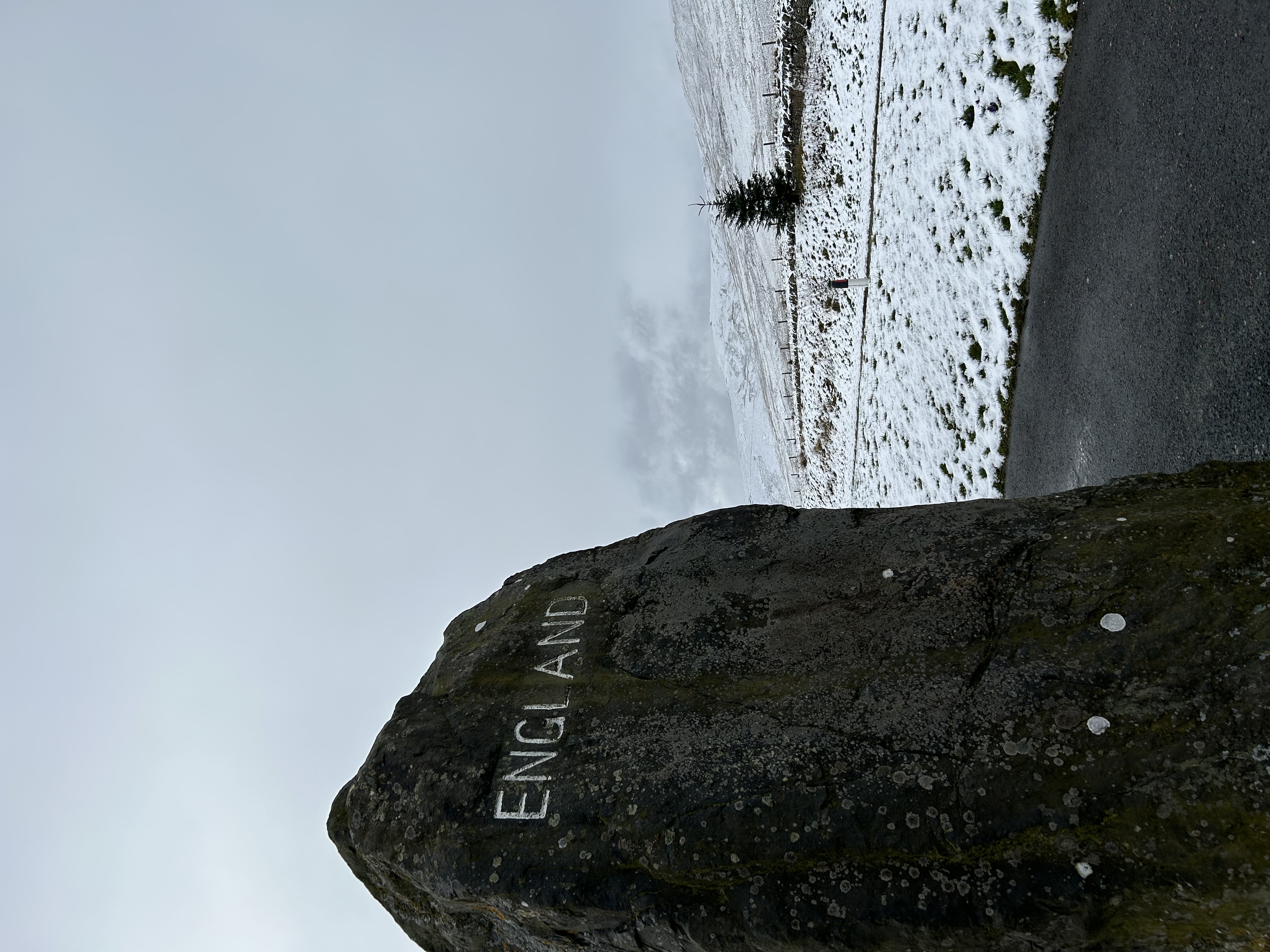 Murray's Green Back south into England now and the point of this day's excursion: Hadrian's Wall. Marisa had read several histories in her early years and teens, always vowing to see this place one day. Crossing back into England, the hills and mountains have a nice dusting of snow, giving us yet another excellent visual memory. Even though many erroneously think of Hadrian's Wall as the border between Scotland and England, it lies entirely within England and has never been any one of the several rather fluid borders between these two lands.