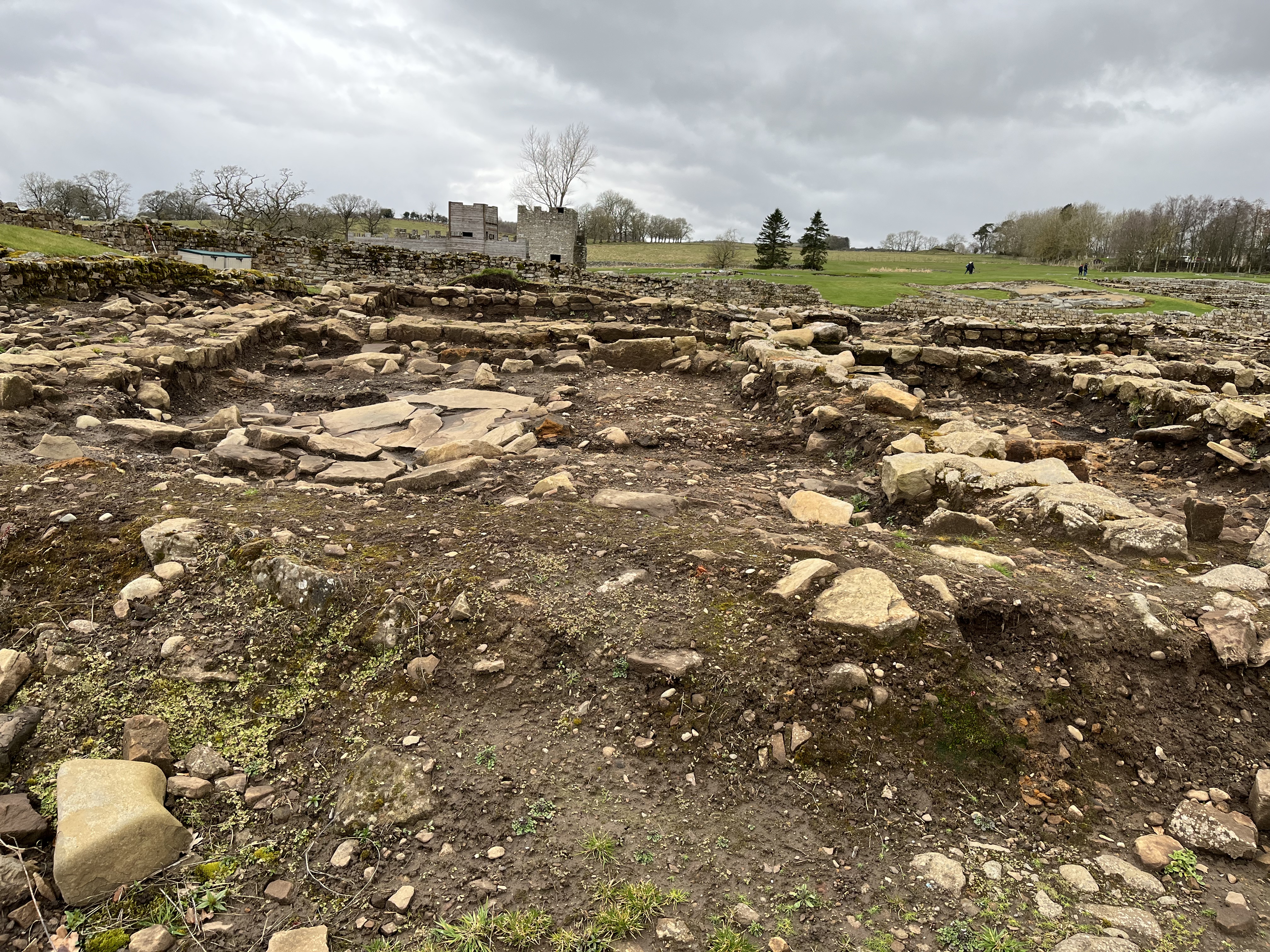 We stop at the Roman Fort of Vindolanda, occupied from about 85 AD to 370. The driver drops us off at the lower point where the little cafe (and bathrooms) are. We order a surprisingly good lunch and lounge about for a bit before heading up the long walk through the ruins and into the museum which is excellent. The whole site is quite a bit larger than I think we imagined and it's easy to get lost in thought about these soldier-occupiers at the far ends of their empire.