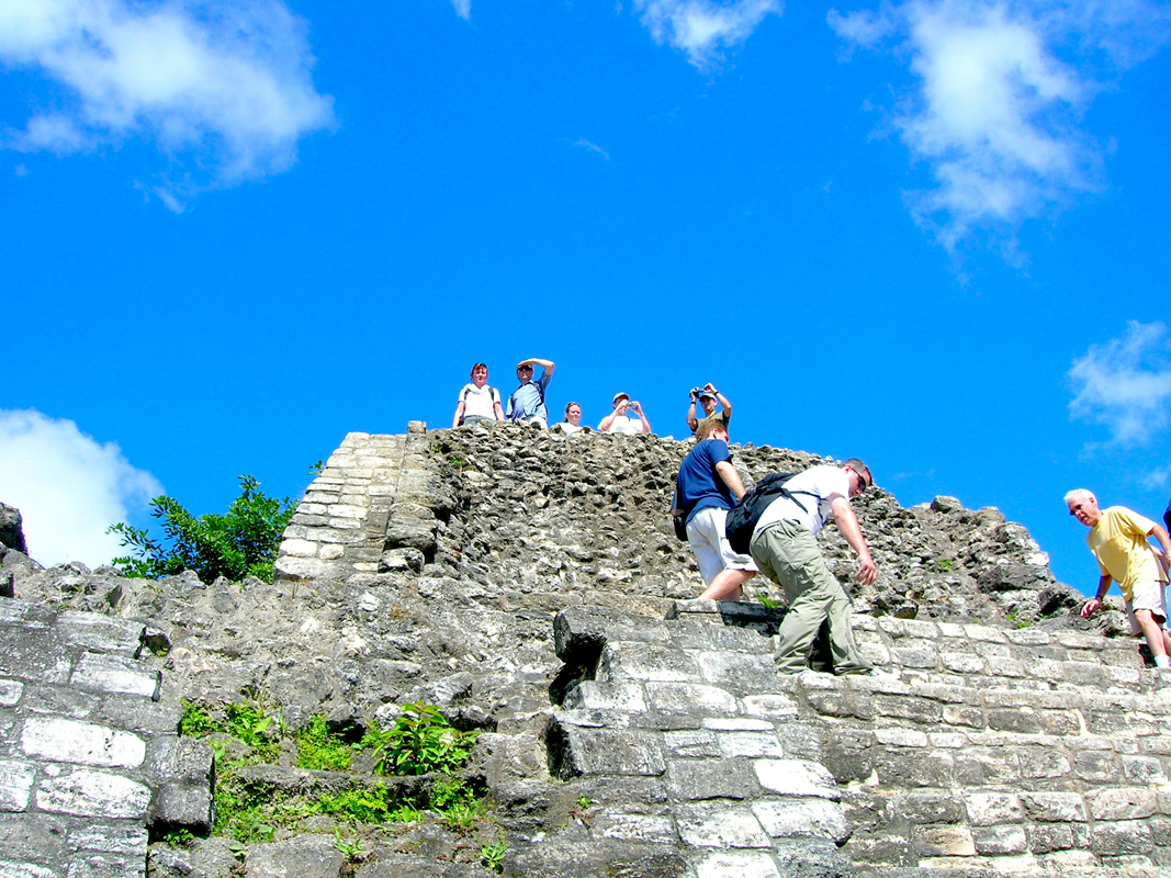 The Mayan ruins of Belize were the highlight of this trip.Having anchored well offshore, we took a ride with the tenders of about twenty minutes to reach the dock. Under blue skies and 90-deg temperatures, we climbed aboard a larger tour bus and were taken fifty miles up the Northern Highway and away from Belize City. At Tower Hill, we embarked on a smaller riverboat that would take us to the ruins of Lamanai about twenty-five miles away on the shallow water of the New River.