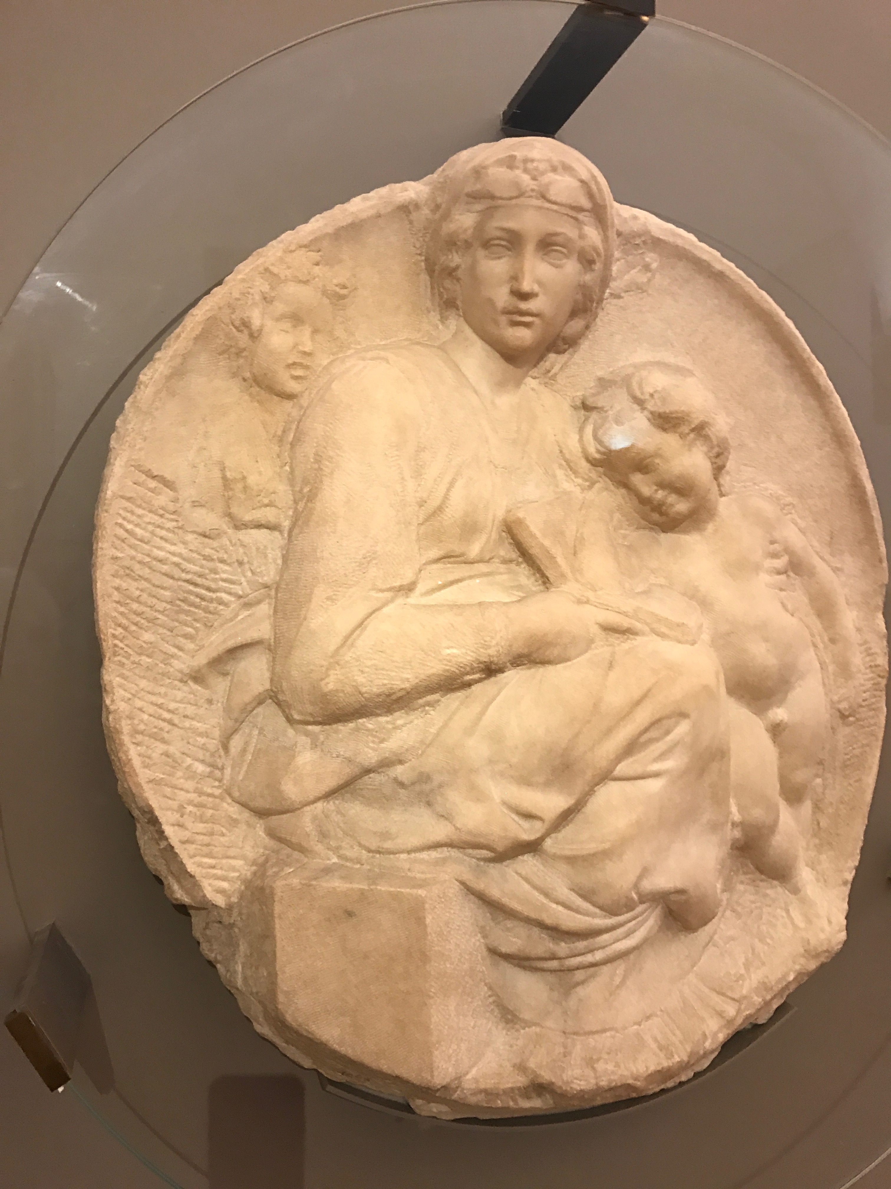 The famous Baptistry doors are replicas, but we see the real ones soon at the Duomo Museum. We think many people must leave this off their rush through Florence, but it's worth the stop. Truly, the doors alone are worth the trip, but they stand among glorious sculptures in the large gallery space: a literal recreation of the old cathedral facade. Donatello's penitent Mary Magdalene looks as if it were made for the twenty-first-century sensibilities of more modern art. And then we have another Pieta of Michelangelo's. This one with Nicodemus looking on -- most say this is a self-portrait of Michelangelo in his last years.