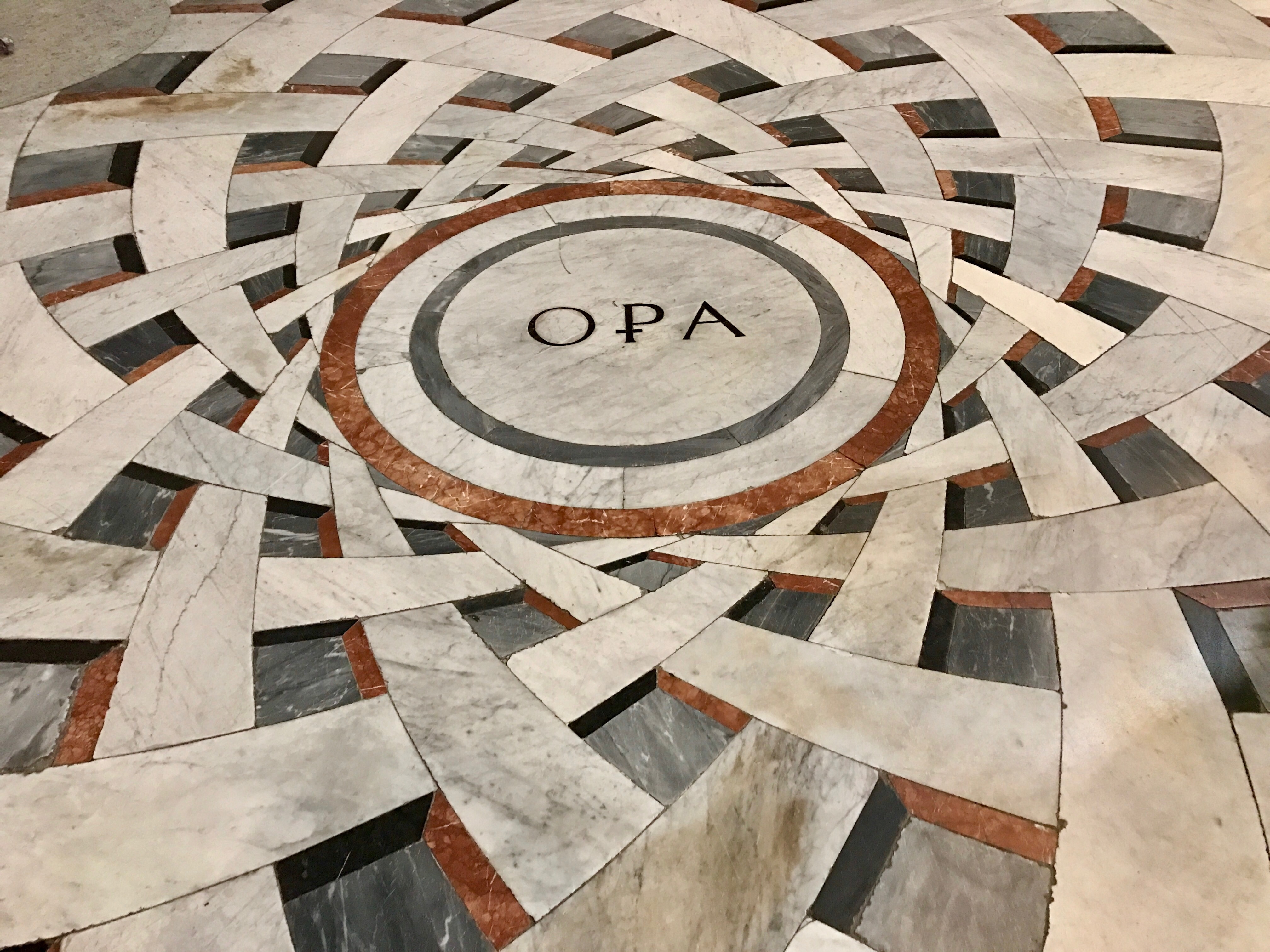 The cluster of historic sites and museums invites us to the city center again. As on every other day of our trip, the mix of art and architectural history are layered upon each other. Today is Duomo Day.Started in 1296 (100 years after the Siena Duomo lays its cornerstone), this is the Renaissance masterpiece by Brunelleschi. And now we come full circle with the Pantheon in Rome: the inspiration and model for this most perfect dome. Which, in its turn, is the model for St. Peters and certainly the national Capital building in Washington D.C. Green and pink and white on the outside, but red, black and gold on the inside. (Incidentally, Marisa and her mother, Faye, have been picking out Italian floor tile for the guest bathroom up at the Minnesota farm. Italian cathedral floors are on our mind.)
