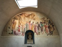One year ago we were in Galway, Ireland on this saint's day. Today, we continue in Florence surrounded for another day with the images -- carved, drawn or painted -- of saints, saints, saints. And the occasional well-connected scoundrel who ran the country during its height of wealth and power.We have, today for the first time, a personal guide for the entire morning. We begin this excellent tour from Context Travel (http://contexttravel.com) at the Church of San Marco, the Medici family's early church. Cosimo the Elder founded one of the first public libraries in the world here, now holding some of the best works of Fra Angelico. Cosimo, in his remorseful older years, also kept a private monkish cell here.