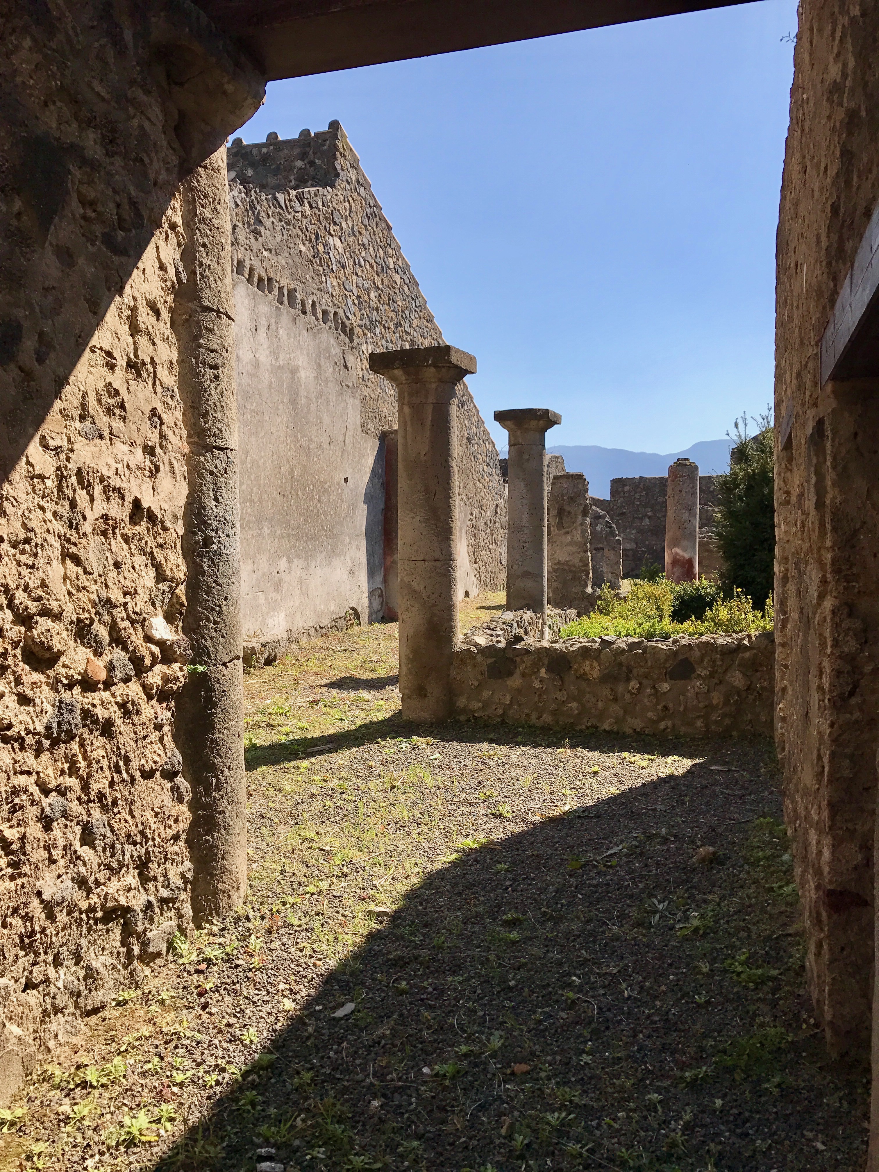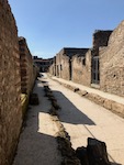 Pompeii's story is, of course, well known because of its sudden demolition by an eruption of Mt. Vesuvius in 79 AD. The devastation is evident in the architectural remains we pass on street after street.