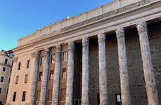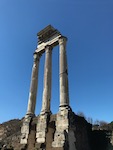 One mile away is the Colosseum, so we saunter over, under clear, blue 50-degree skies. Naturally, every stop of the way, there appears an old, very old or ancient structure. All the way, the streets are rather empty, and we reach the crowds only when we near the Roman Forum and make our way to the entry lines for our destination. Perfect sky and ancient spectacle take us back in time as Marisa reads history and descriptions out loud for us as we walk up, down and around.