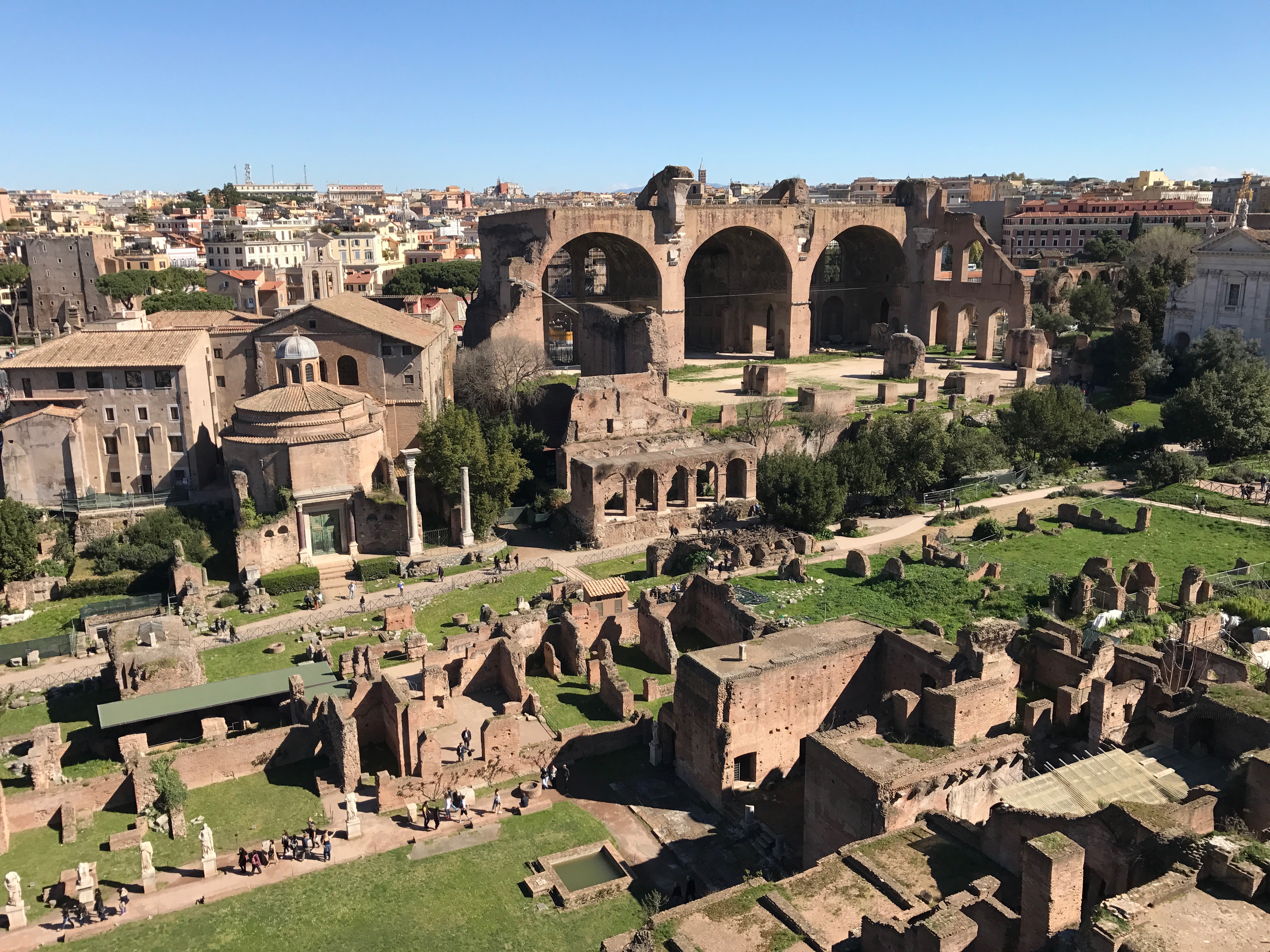From an upper level, we look out at the Palatine Hill and the Roman Forum. Our next stops.