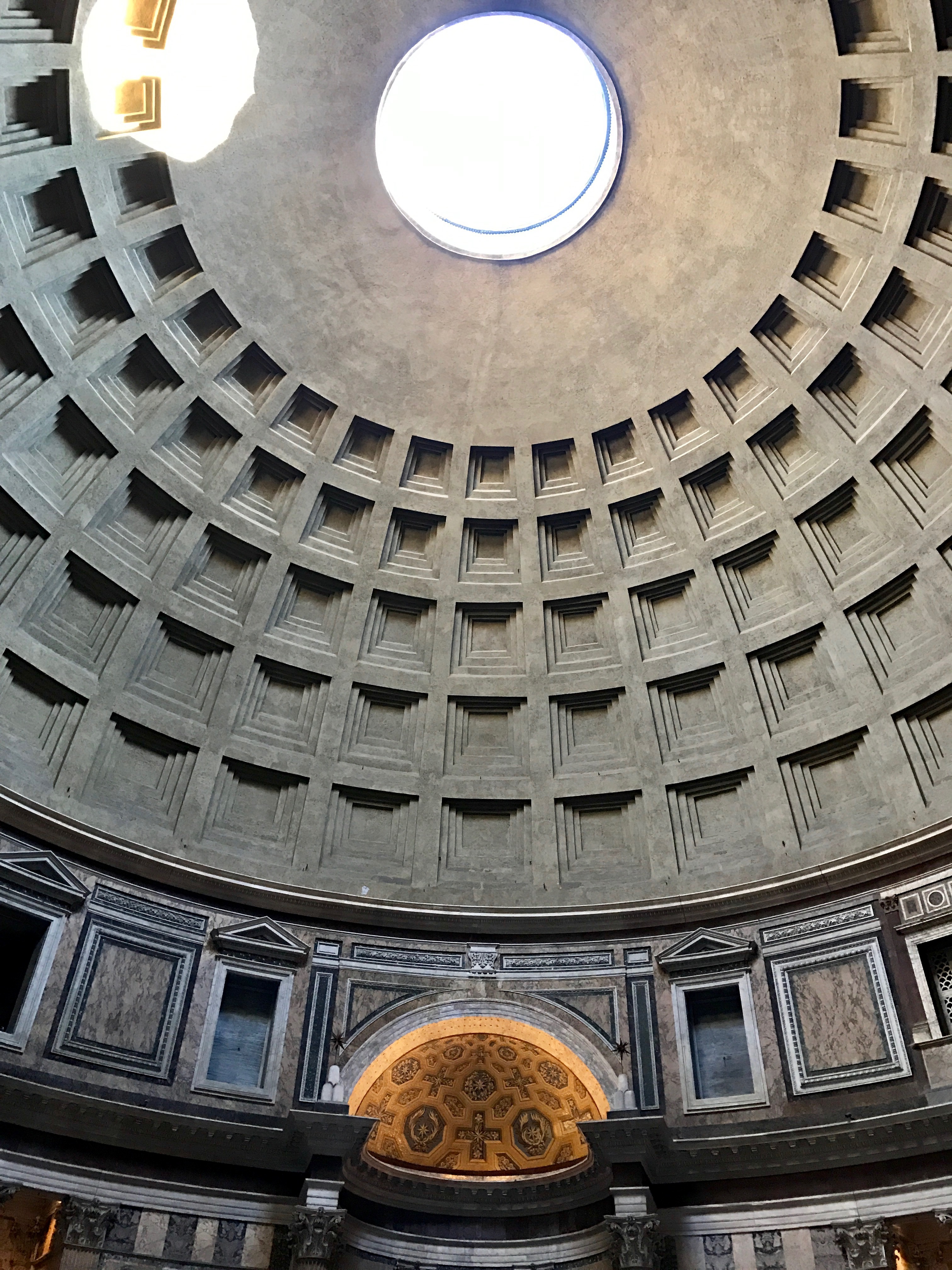 Back out on the street after our rest, passing more crowds and cathedrals, the Pantheon is but a few minutes away for us. Group tours and individuals are managed well, and we enter the building quite quickly. As soon as one looks up, that's when the exceptional status of this treasure strikes.