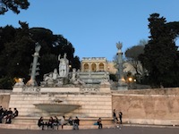 We then take a walk -- along with huge numbers of others -- on a pedestrian-only stretch of street that leads to the Piazza del Popolo. It lies just inside the northern gates of Rome and, before railroads, was a medieval European's first glimpse of Rome. Marisa had begun reading Goethe's Italian Journey at the airport and was just finishing up the chapter where he arrived at this very Piazza. Right here. Right. Here.