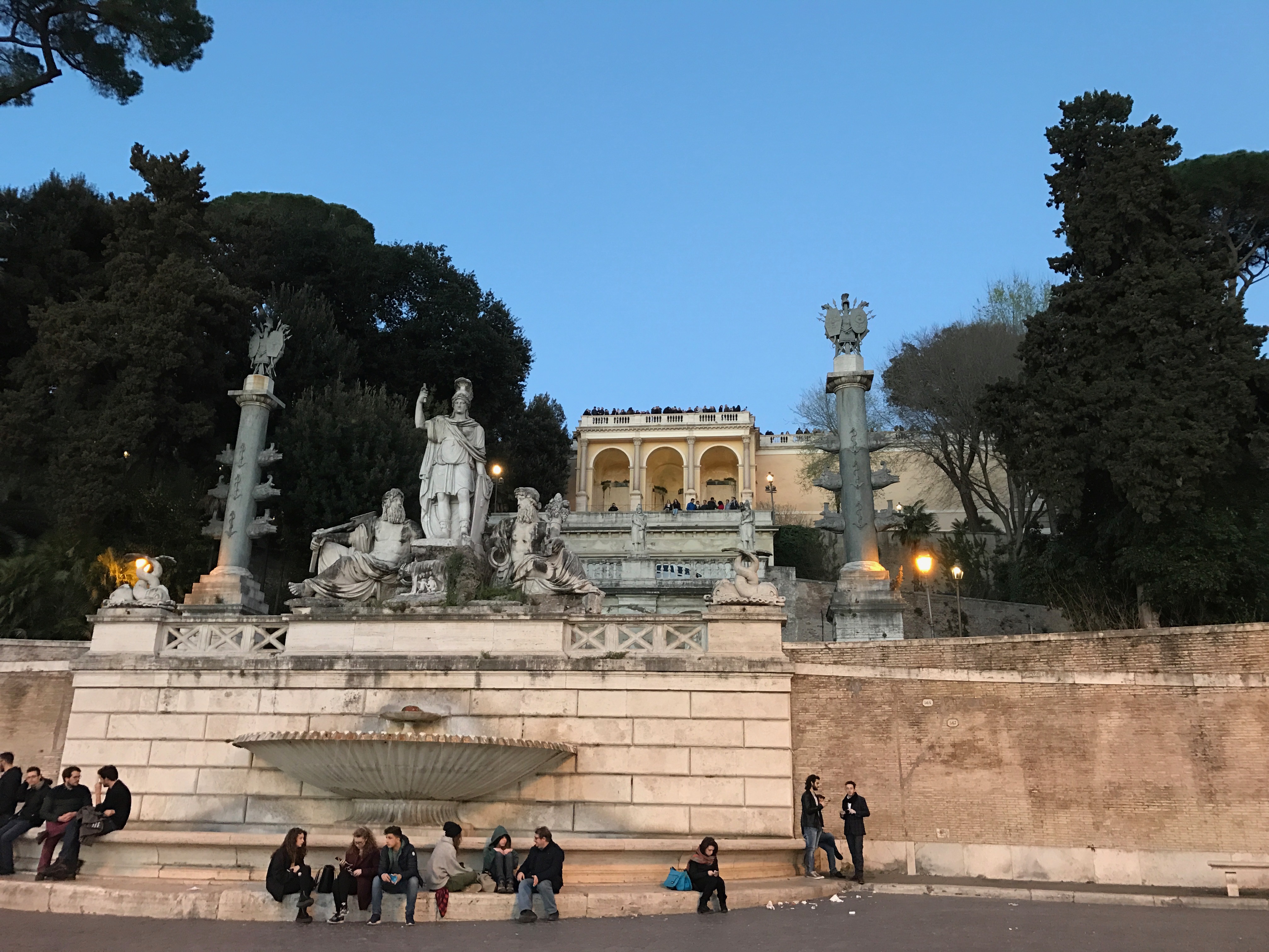 So many people of all ages are in the Piazza, many in teens and early twenties, plus street performers, to use the term loosely. They are selling bubble-makers and little flying copters and, as everywhere we have walked today, selfie sticks for mobile phones. Well, we learn that walking and gathering and milling about at night is even more of a "thing" than all we have seen during the day.