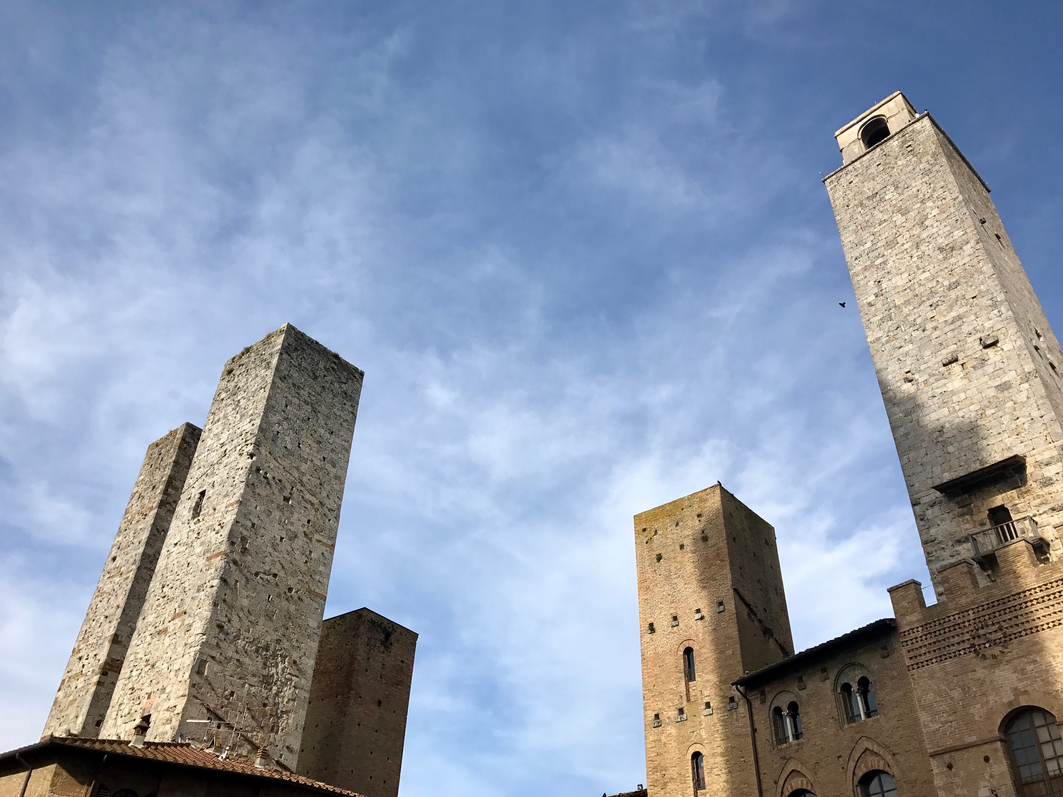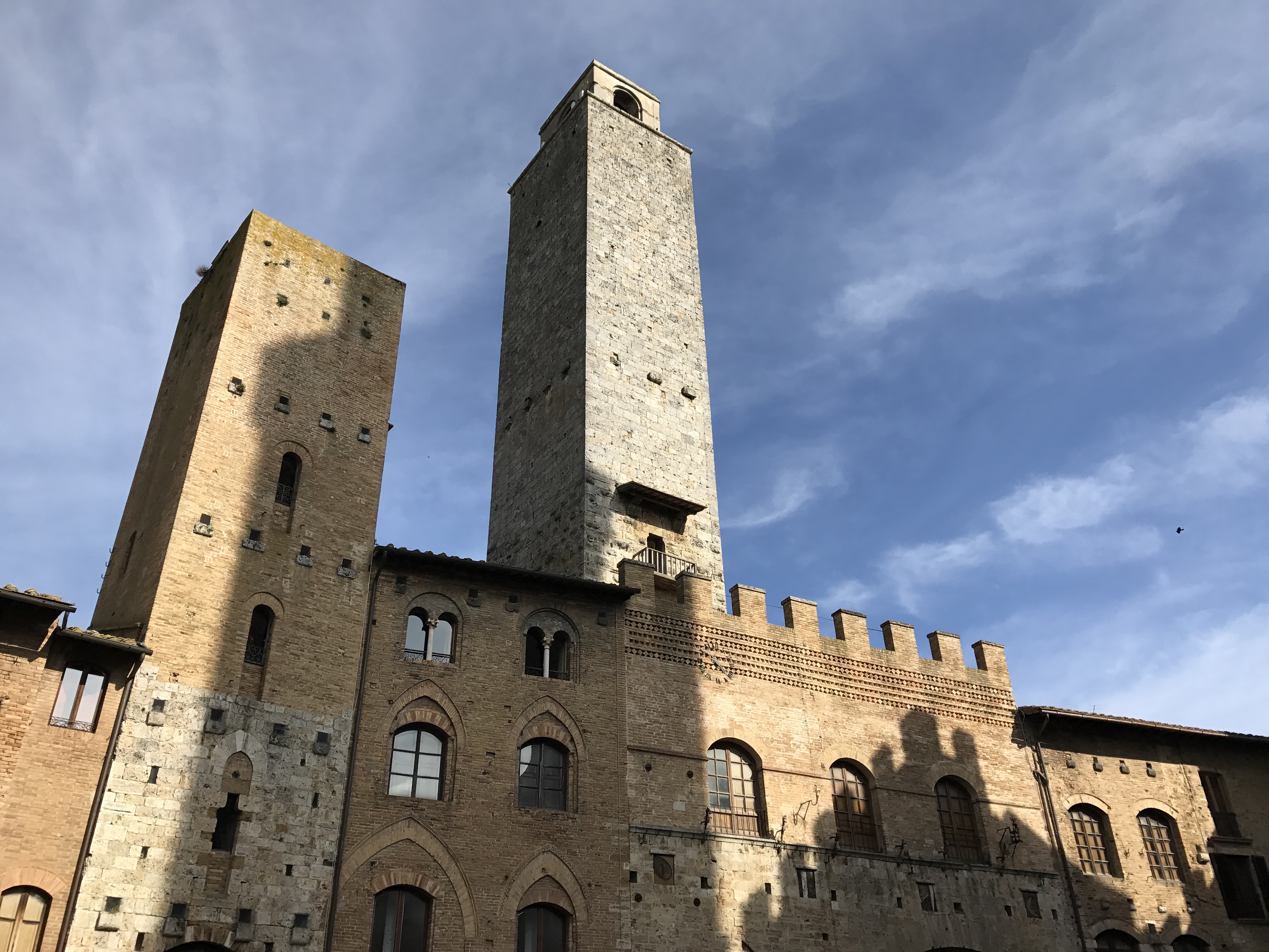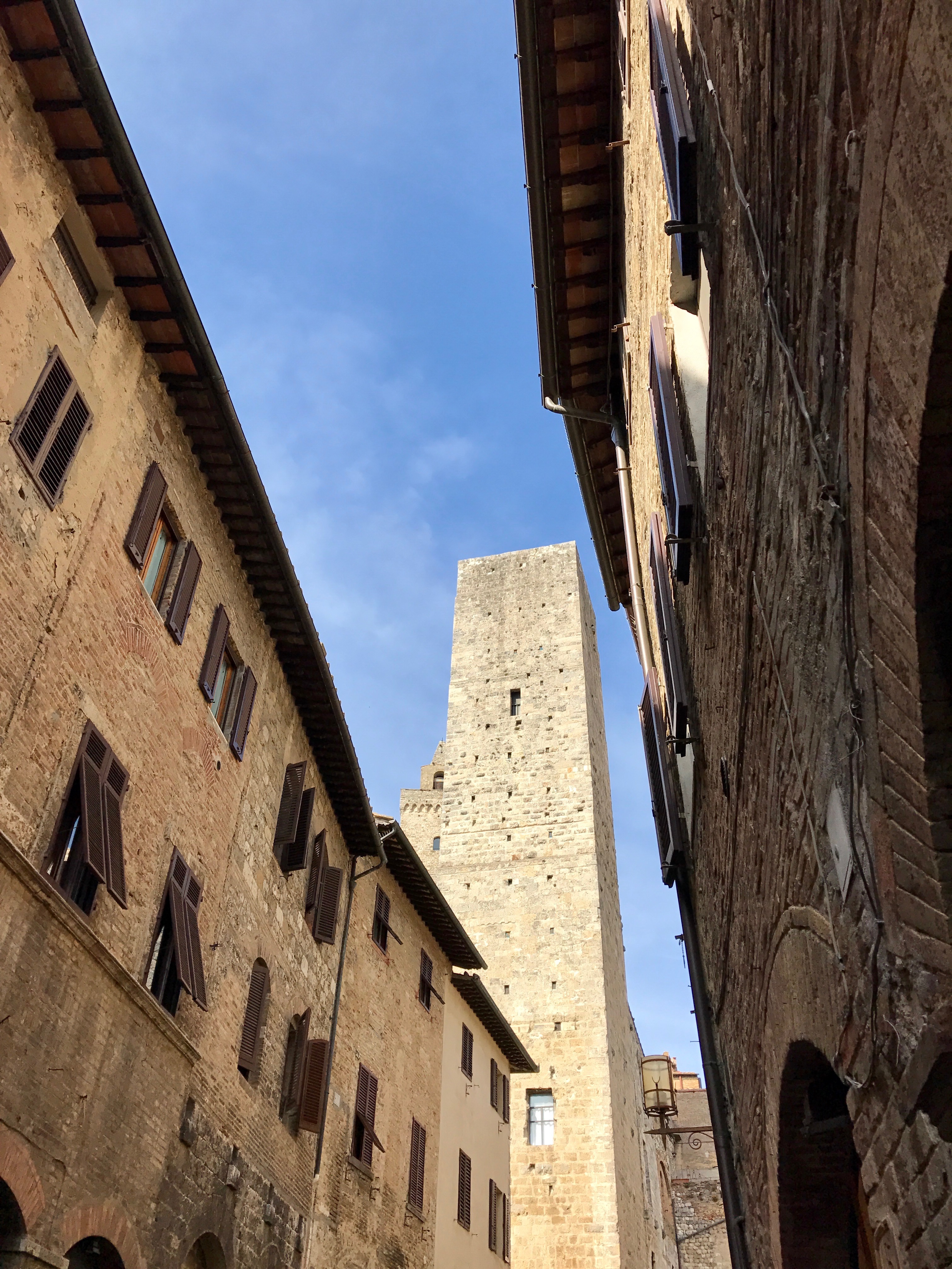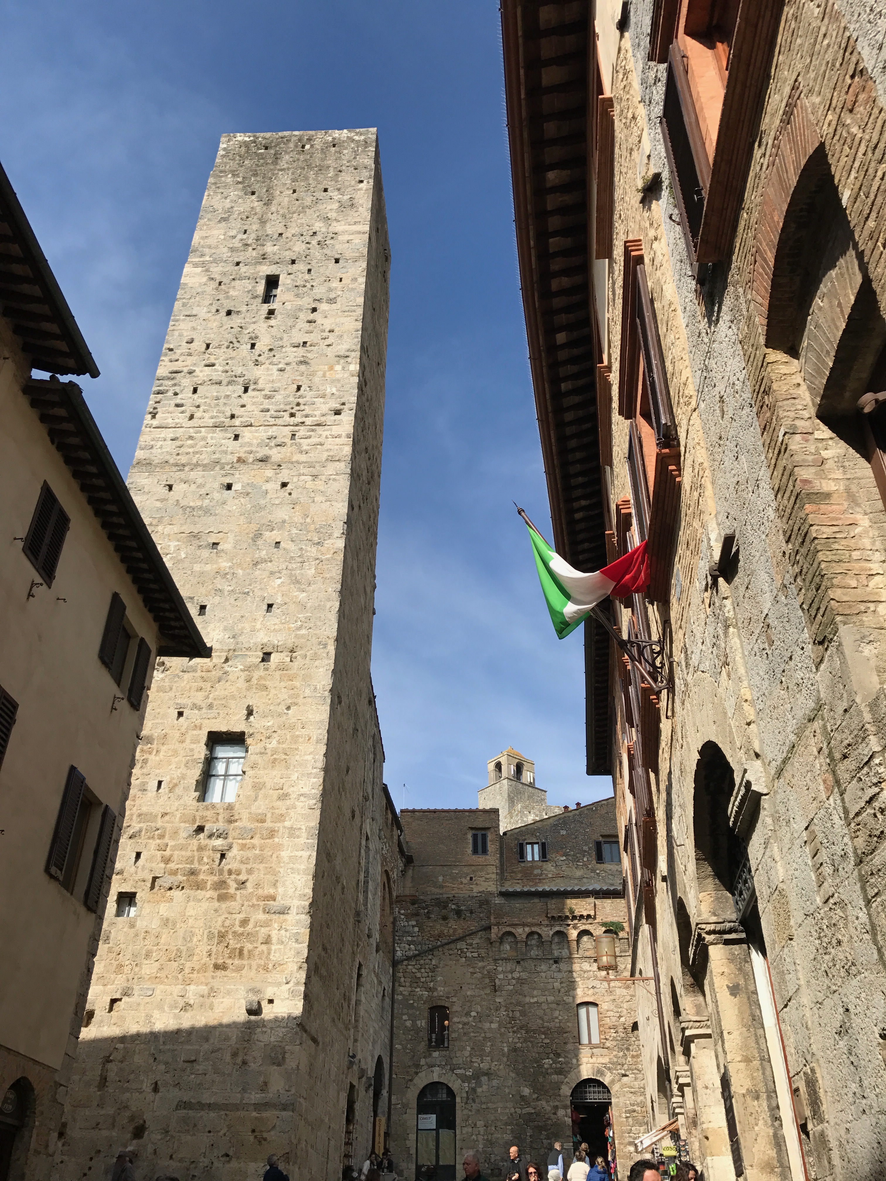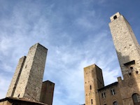 We meander through the narrow streets, blissfully happy at the prohibition against mechanized vehicles in this town of towers. Up to the Piazza Duomo, but -- nope -- the cappuccino calls again and we sit and watch. Good thing, too, as Marisa has left that Christmas ornament in the gelato shop across the square and runs back to get it. Whew. Still there.