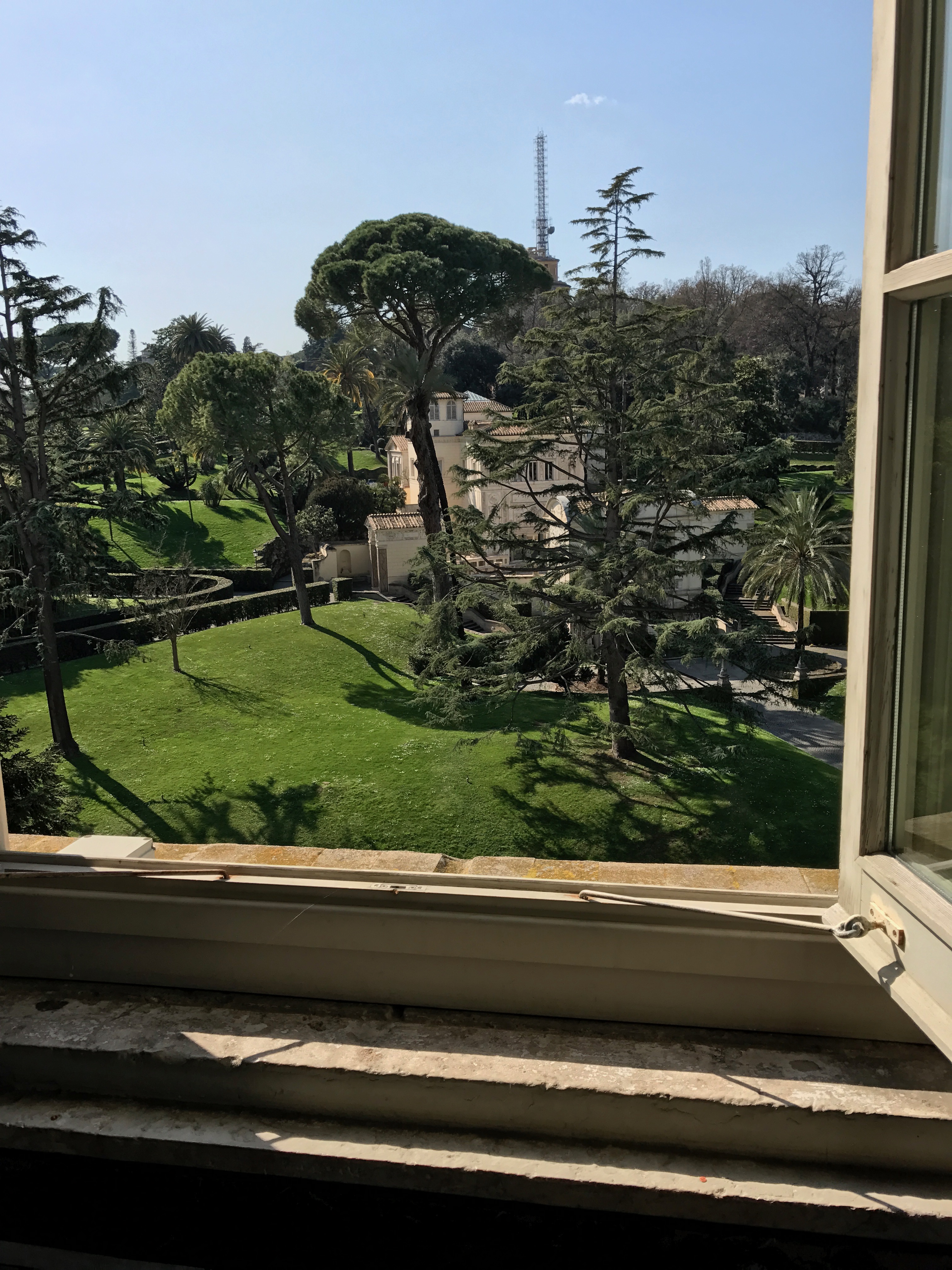 Most museums are closed, but the Vatican is open. And that means there will be crowds. Oh, well. We have timed, pre-purchased tickets to the Museum and we'll just have to wait in line with everyone else to get into St. Peter's.We walk on yet another stunningly perfect morning, slowly by the river, to the separate nation of 110 acres and a population of 842. Vatican City was designated an independent state in 1929, meaning that it is not subject to any other nation, including Italy, even though no passports are checked upon entry.