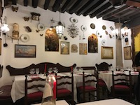Arriving back in Rome, we taxi to the restaurant near the Piazza del Popolo recommended in private conversation with our guide earlier today. Osteria St. Ana is the kind of restaurant that sits a half floor down from street level with lots of homey decorations on walls and petite chairs and tables jammed in, four male waiters moving quickly, squeezing to and from the kitchen.