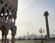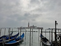 We have a mid-morning departure, so our morning is easy. We amble through foggy San Marco, then a canal shuttle to the airport. Not cheap, but completely right for the goodbye to Venice and to Italy.