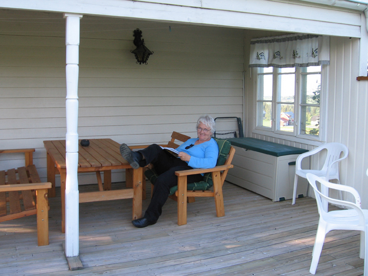 We took our picnic goodies to the kitchen and made more plans for relaxation that evening. We ate small snacks for supper (we’d been eating constantly) followed by walks in the countryside. Having bought English-language books at various train stations or airport stores in the past several days, each of us eventually finished the evening by reading in bed (in the refracted midnight sun, without reading lamps) before falling asleep before 1:00am.