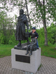 At the entrance to the bridge and across the road is a stone memorial. Yvonne told us they all stop here during their Syttende Mai procession. (The 17th of May is Norway's Constitution Day.) Just up the hill is the red house where King Haakon spent the night before escaping to England in 1940 after the German invasion, along with a newer statue symbolizing the “First Woman of Målselv” and the hard work these women have always done.